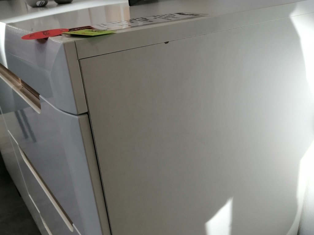 Komoda - NORDI NKSZ107, lesklá bílá/dub riviéra (BAZAR)
