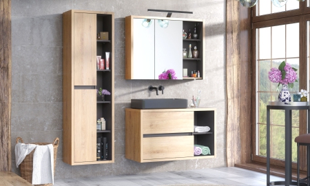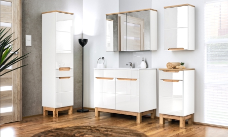 Koupelnu si můžete sestavit podle vlastních představ z jednotlivých dílů systémového nábytku. Máme v nabídce koupelnové skříňky, zrcadla, sanitární keramiku, koupelnové osvětlení a další. Koupelnu si můžete vybavit také jiným nábytkem než zde uvedeným. Většinu nábytku máme skladem, proto jsme schopni vám ho dodat v krátkém termínu a s naší dopravou.