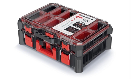 - víko organizéru znemožňuje posunutí příslušenství a zabraňuje přesypání drobných prvků při přepravě.