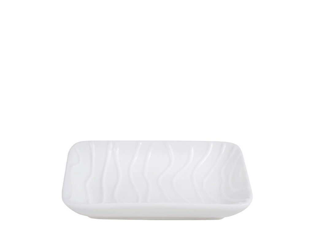 Mýdlenka MAREA je vyrobena z keramiky v lesklé bílé barvě.
