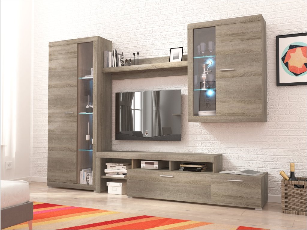 Obývací stěna ALVARO reaguje na praktické potřeby každého člověka. Police a vitríny nabízí skvělé řešení, které vám umožní vystavit své fotografie a oblíbené předměty přesně ve vašem stylu.