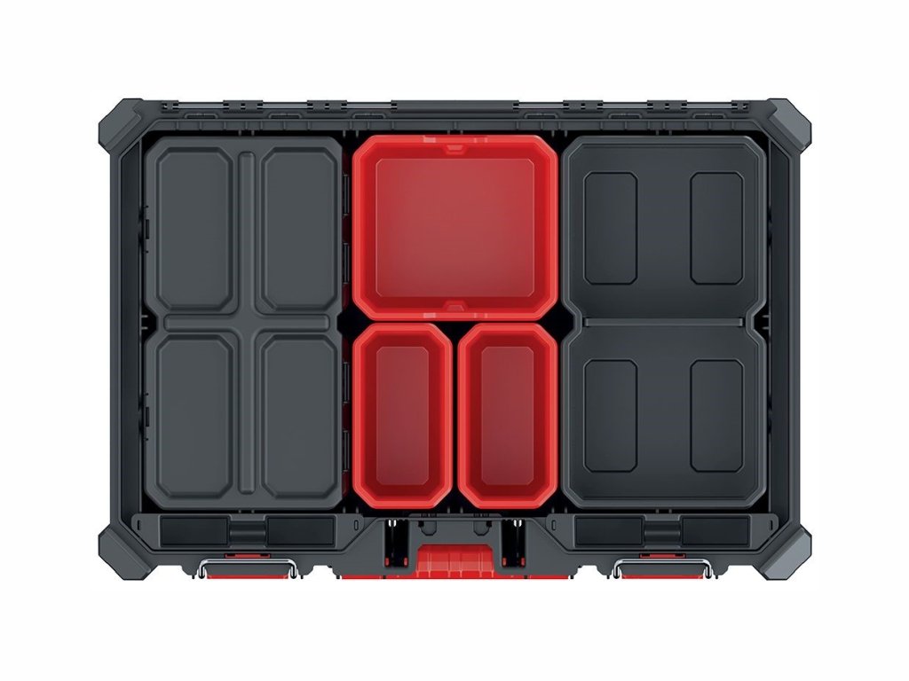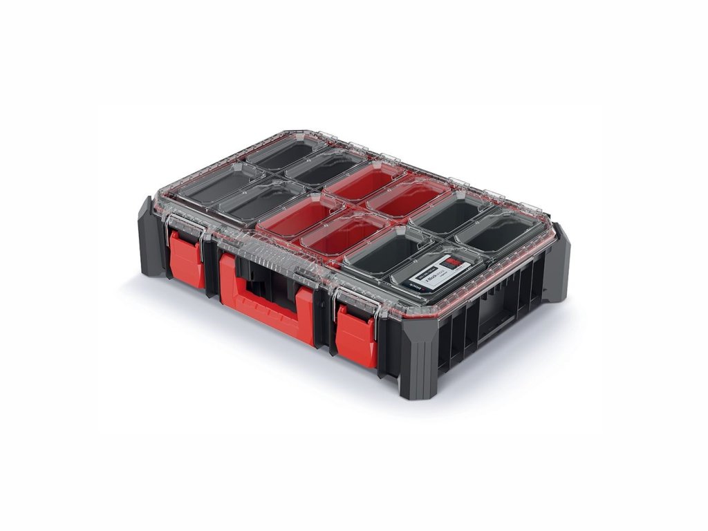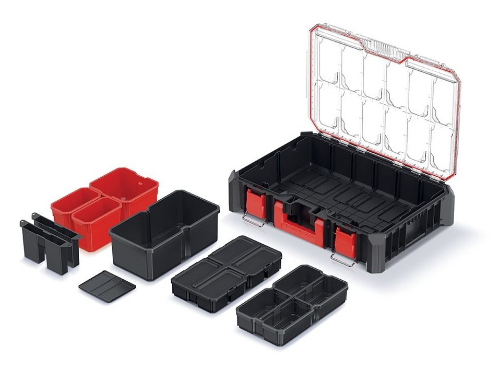 Organizér X BLOCK BRIDGE je vybaven kvalitním těsněním, odolá prachu i vodě a je ideálním společníkem při skladování nářadí. Tělo organizéru je vyrobeno z polymerní směsi se zvýšenou odolností a víko z průhledného polykarbonátu. Spony jsou z ABS s kovovými závěsy.