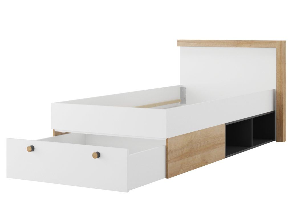 Postel - RIVA 50, dub riviéra/bílá/matná černá, bez matrace