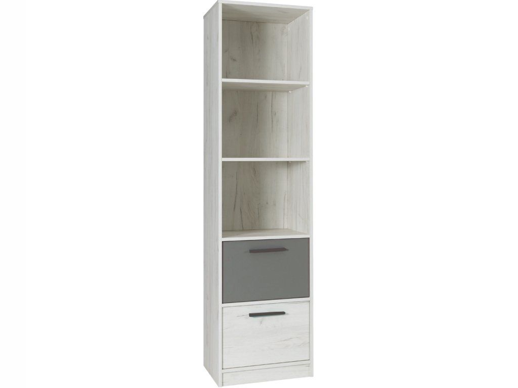 Regál/knihovna - PICOLO 01, bílá/šedá, š.61 x v.197 x h.43 cm.