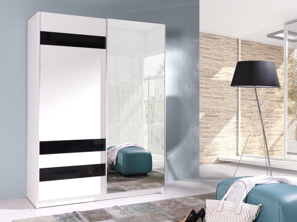 Konstrukce je vyrobena z kvalitního a odolného lamina v bílé barvě, posuvné dveře jsou v barvě bílé s černými pruhy v kombinaci se zrcadlem.