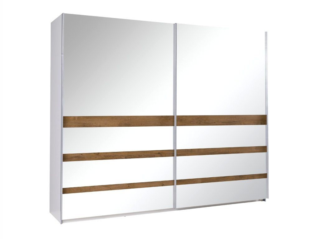 Konstrukce je vyrobena z kvalitního a odolného lamina v bílé barvě, posuvné dveře jsou v dekoru dřeva v kombinaci se zrcadlem.