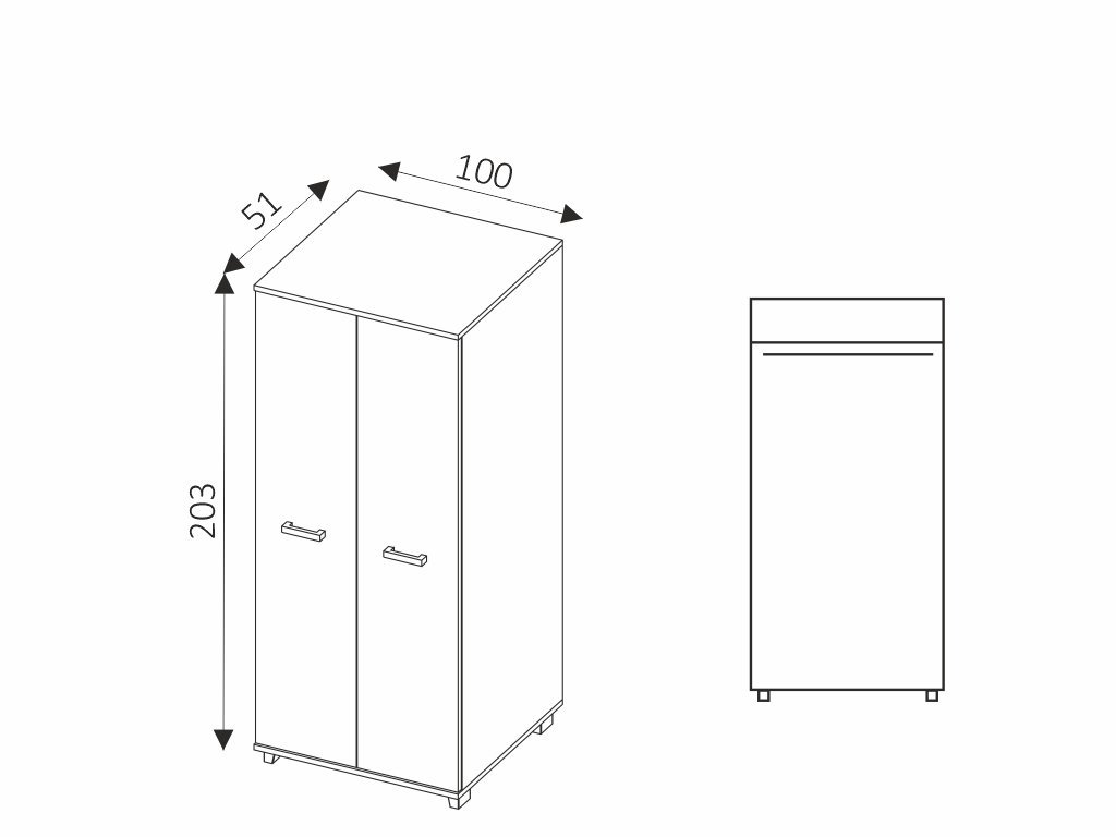 - šířka 100 cm, výška 203 cm, hloubka 51 cm.