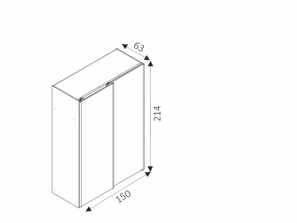 - šířka 150 cm, výška 214 cm, hloubka 63 cm.