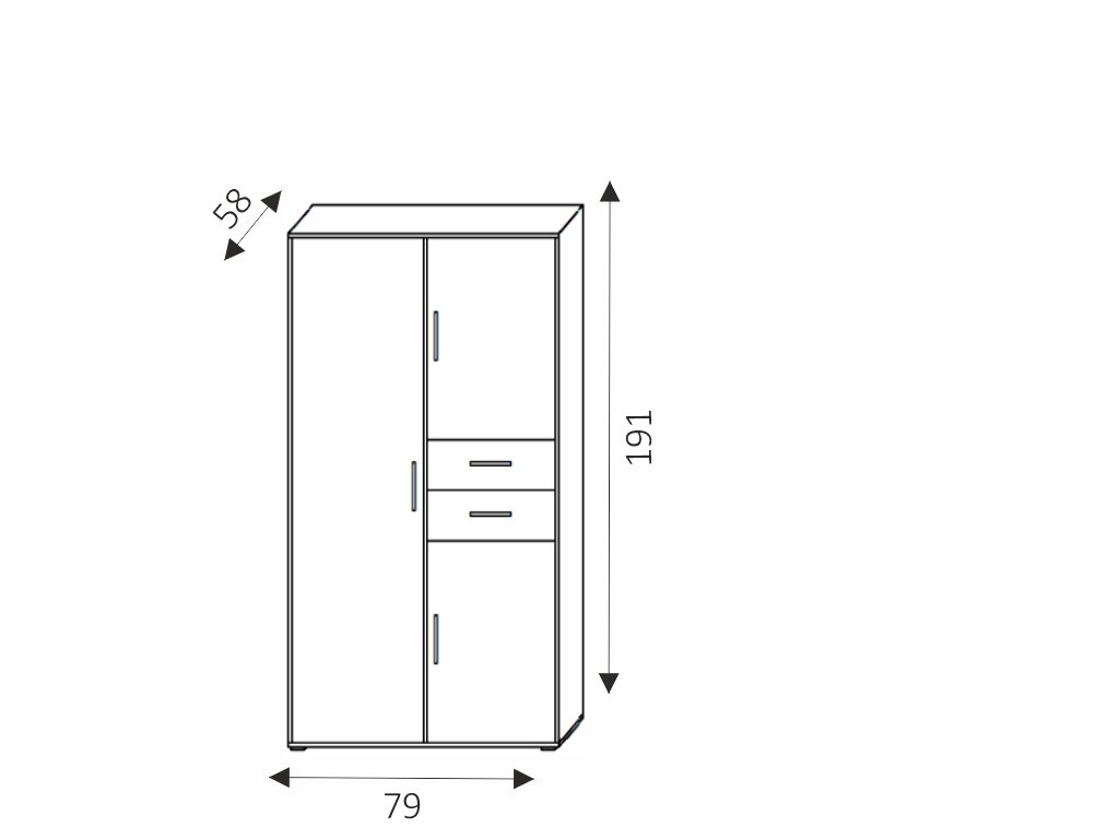 - šířka 79 cm, výška 191 cm, hloubka 58 cm.