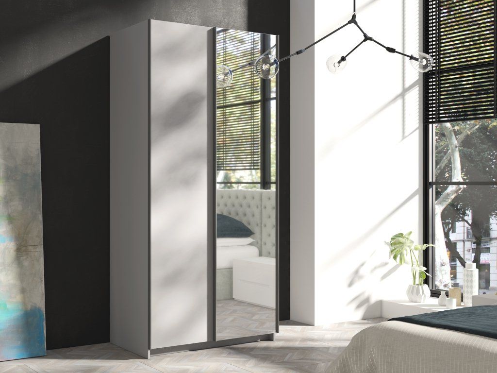 Šatní skříň - RICK 100, zrcadlo, šedá