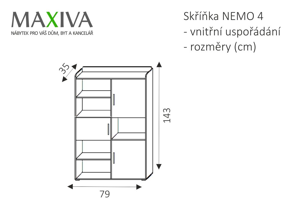 Skříňka NEMO 4 je součástí skupiny systémového nábytku NEMO do dětského pokoje.