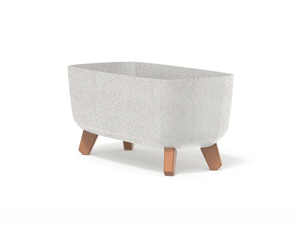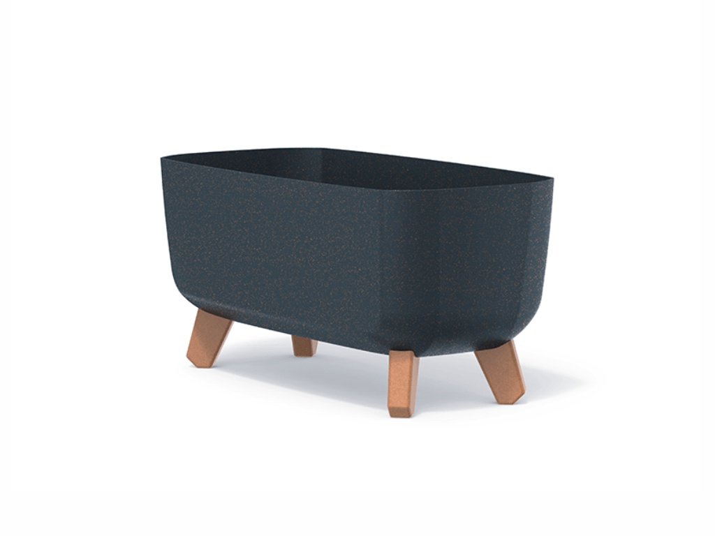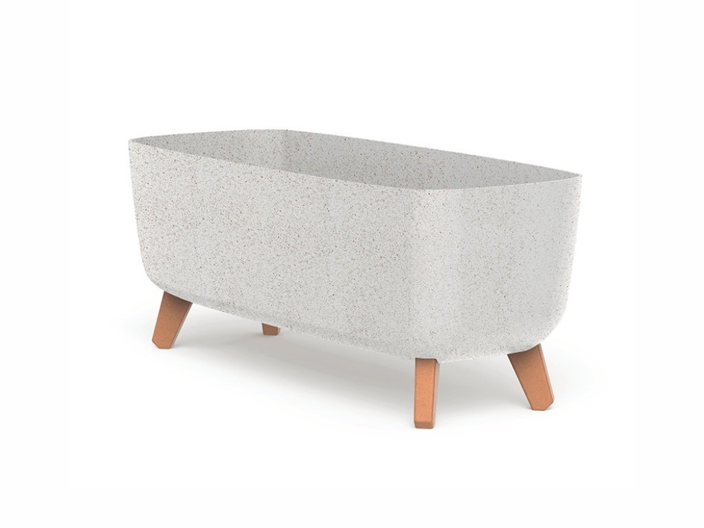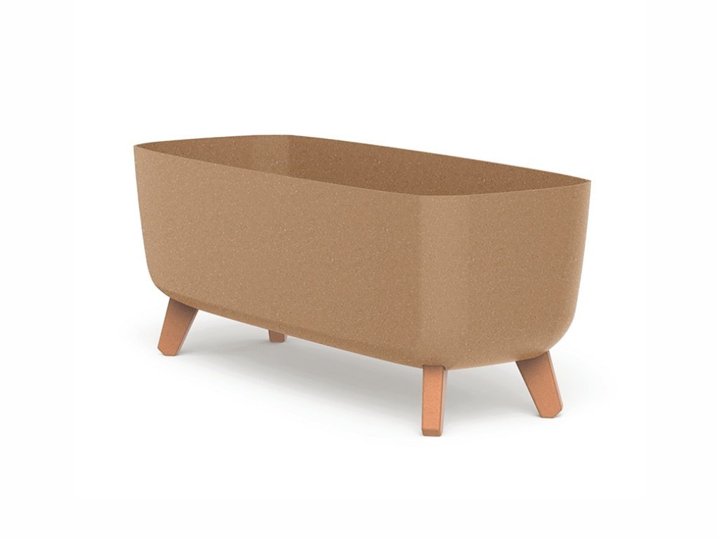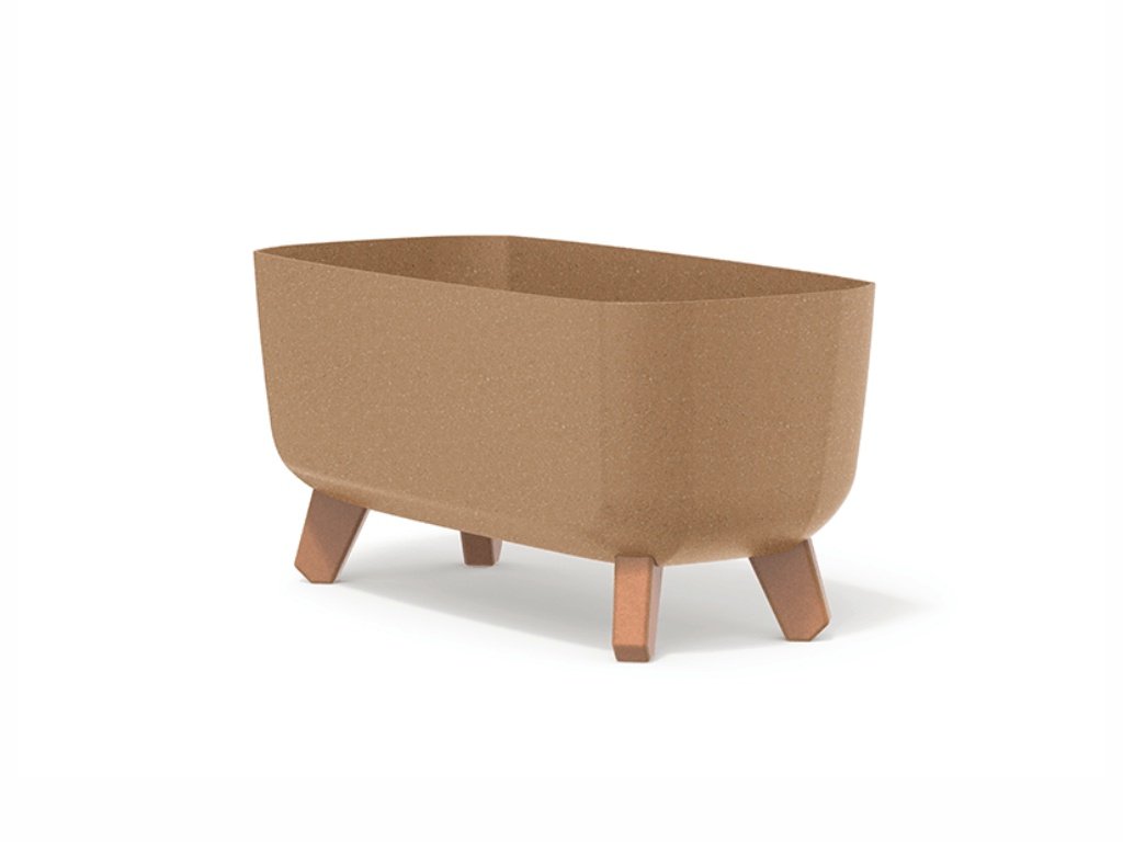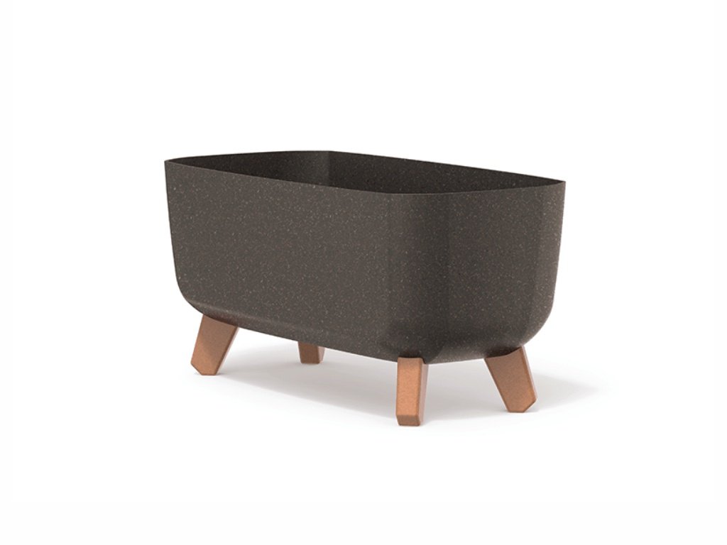 Květináč je vyroben z plastu v kombinaci s přírodním dřevem, které je získávané při zpracování dřeva za pomocí pokročilé technologie recyklace.
