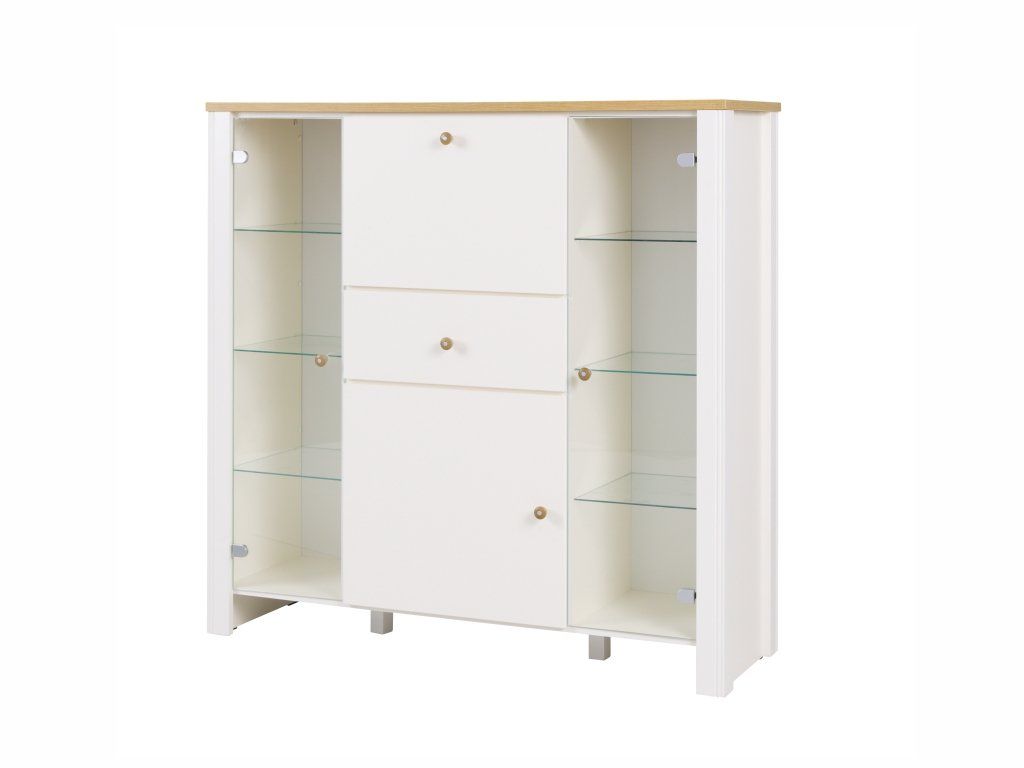 Vitrína - LIDO 15, dub stirling/borovice andersen, š.116 x v.137 x h.45 cm.